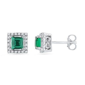 Princess Cut 7 karaat groene smaragd Lady Studs oorbellen wit goud 14K