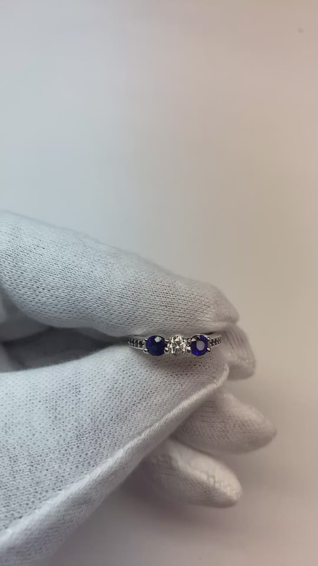 Steen Details: Er is één centrale diamant, twee blauwe saffieren ca. 0,25 karaat per stuk en kleine saffieren ca. 0,32 karaat Natuurlijke aarde gewonnen stenen.