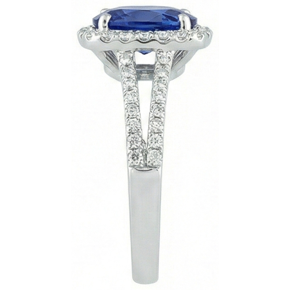 Steenspecificaties: Er is één blauwe saffier in het midden van ongeveer 2,00 karaat & ca. 1,25 karaat kleinere diamanten aan de zijkant. Natuurlijke aarde gedolven stenen.