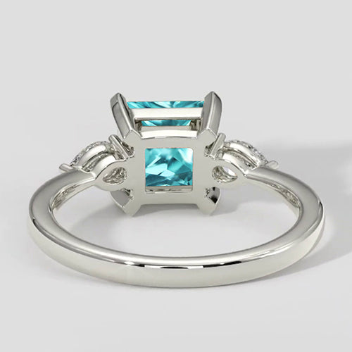 Steendetails : Er is één cushion-geslepen paraiba-steen in het midden van ca. 2,25 karaat (ca. 6,5 mm) en twee kleine peervormige diamanten van ca. 0,50 karaat elk aan de zijkanten. Vervaardigd met natuurlijke, uit de aarde gewonnen stenen.