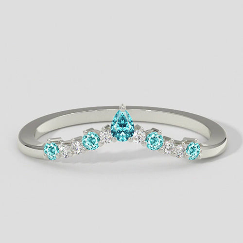 Steendetails : Er is één peergeslepen paraiba van ca. 0,35 karaat en ca. 0,75 karaat aan ronde paraiba-stenen en diamanten. Natuurlijke, uit de aarde gewonnen stenen.
