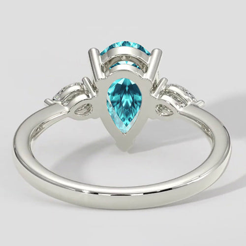 Details van de steen : In het midden bevindt zich een peervormig geslepen paraiba-steen van ca. 1,50 karaat (ca. 7,65 x 5,85 mm) en aan de zijkanten twee peervormig geslepen diamanten van elk ca. 0,50 karaat (ca. 5,4 x 3,6 mm). Vervaardigd met natuurlijke, uit de aarde gewonnen stenen.