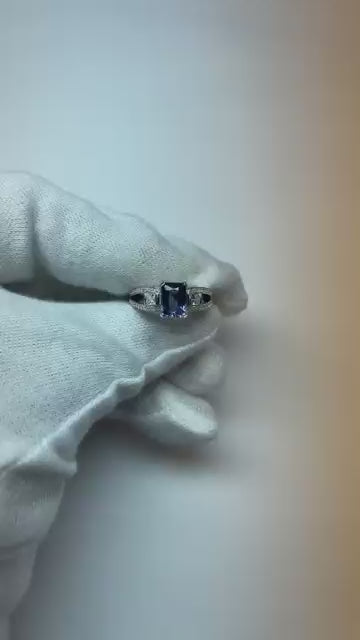 Steenspecificaties: Er is één saffier in het midden van ca. 2,25 karaat, 2 diamanten ca. 0,35 karaat per stuk (ca. dia. 4,4 mm) en 40 diamanten van ca. 0,02 karaat elk (ongeveer dia. 1,5 mm). Natuurlijke aarde-gedolven stenen.